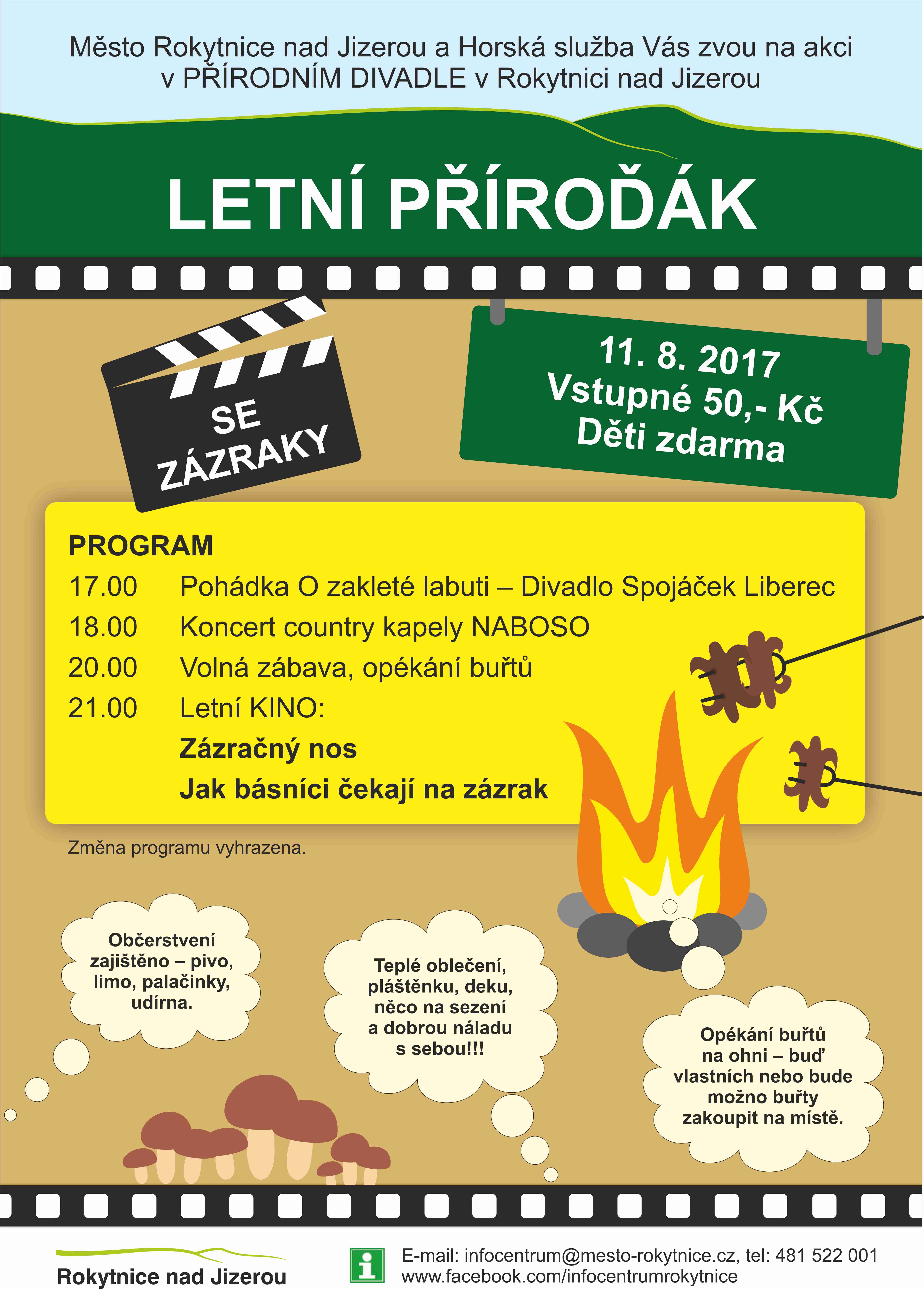 Srdečně Vás zveme na LETNÍ PŘÍROĎÁK – zábavnou akci nejen pro rodiče s dětmi, která se uskuteční JIŽ TENTO PÁTEK 11. 8. 2017 od 17:00 hodin v přírodním divadle v Rokytnici nad Jizerou.